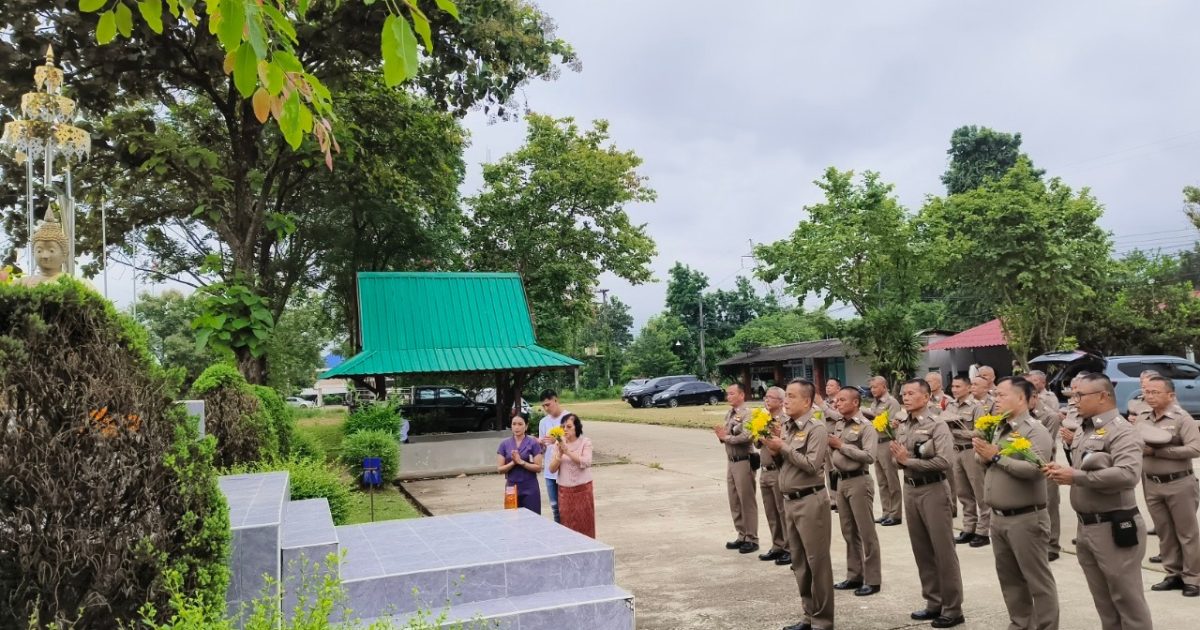 – เวลา 08.30 น. – ข้าราชการตำรวจทุกนาย พร้อมกันบริเวณหน้าสถานีฯ ทำพิธีถวายเครื่องเช่นไหว้ศาลพระภูมิประจำสถานีฯ