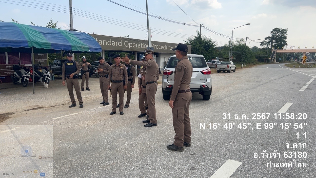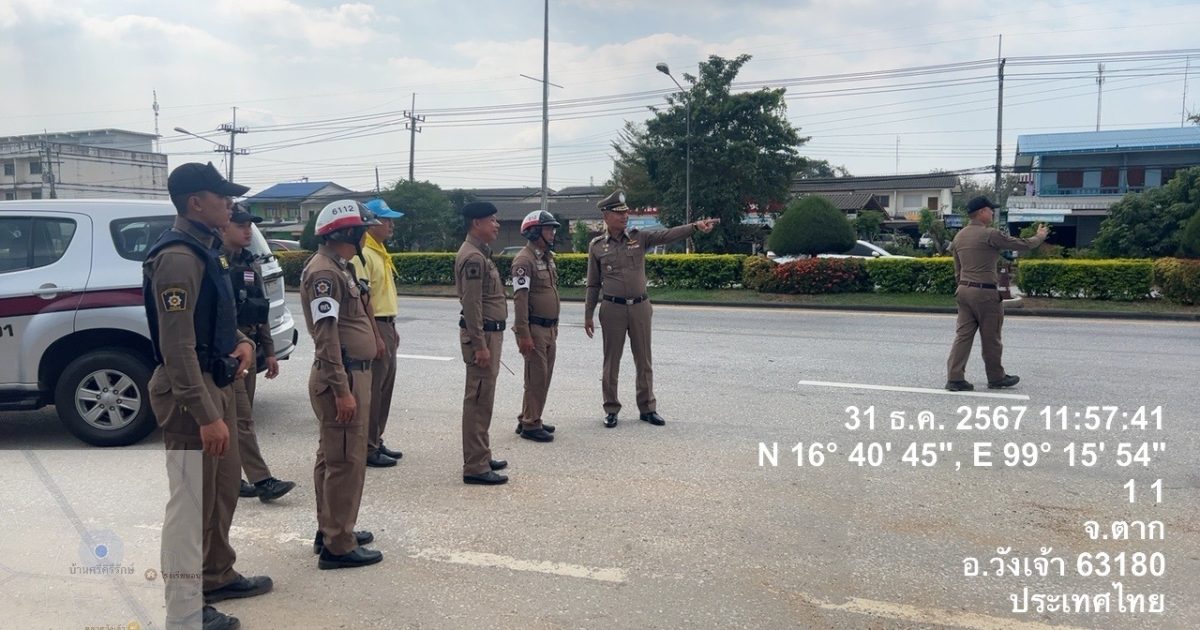 พล.ต.ต.สัมฤทธิ์ เอมกมล ผบก.ภ.จว.ตาก ได้มาตรวจเยี่ยม ศูนย์จราจร สภ.วังเจ้า พบ พ.ต.ท.เกียรติธาดา มงคลชโยสีห์ รอง ผกก.ป.สภ.วังเจ้าและเจ้าหน้าที่ตำรวจจราจร อยู่ปฏิบัติหน้าที่อำนวยความสะดวกการจราจร พร้อมกำชับการปฏิบัติหน้าที่ในช่วงเทศกาลปีใหม่ ทั้งนี้ได้มอบสิ่งของให้แก่เจ้าหน้าที่ เพื่อเป็นขวัญ กำลังใจในการปฏิบัติหน้าที่
