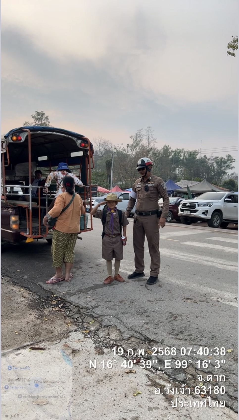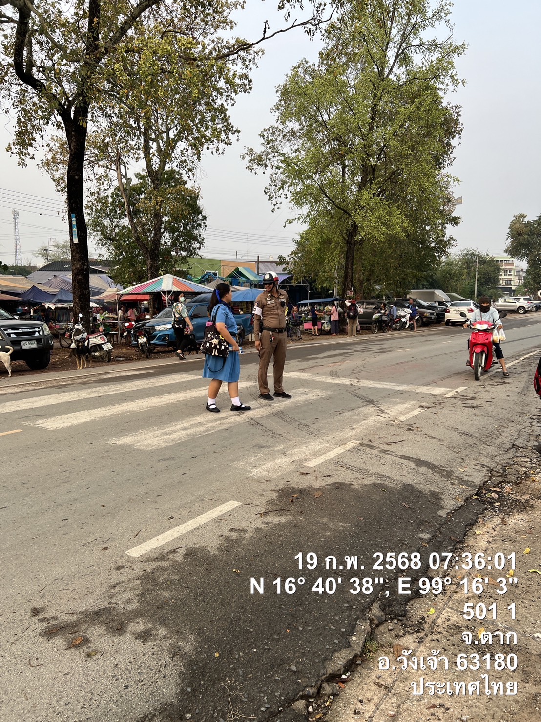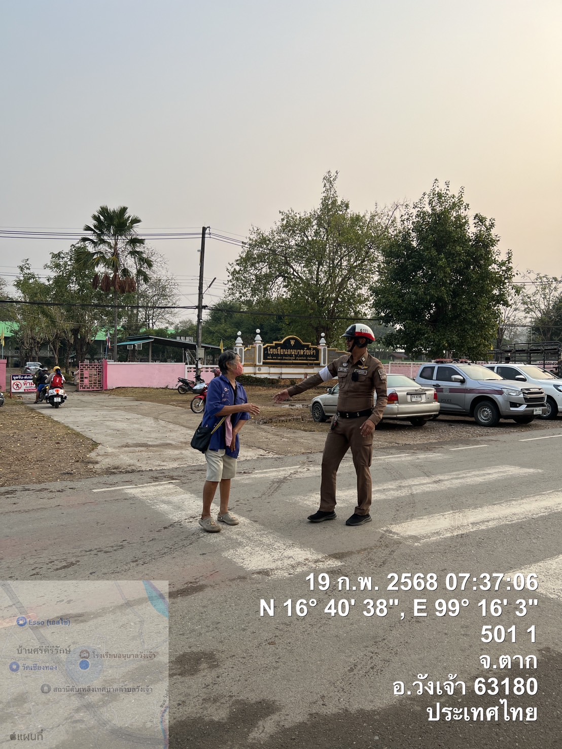 ปฎิบัติหน้าที่สายตรวจจราจร ว.4 ว.10 อำนวยความสะดวกการจราจร บริเวณบนถนนหน้า โรงเรียนอนุบาลวังเจ้า ในเขตเทศบาลวังเจ้าพื้นที่รับผิดชอบ