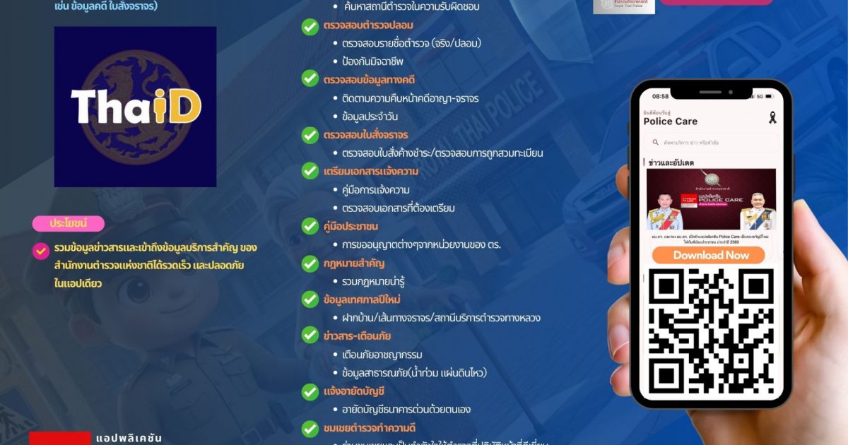 หนึ่งในฟังก์ชันที่มีความสำคัญอย่างยิ่ง คือ เมนู แจ้งอายัดบัญชีด้วยตนเอง ซึ่งได้รวบรวมเบอร์ศูนย์ Hotline (AOC) ของธนาคารทุกแห่ง เพื่อให้ผู้เสียหาย จากอาชญากรรมออนไลน์สามารถติดต่ออายัดบัญชีได้ทันที ลดความเสียหายและเพิ่มโอกาสในการติดตามทรัพย์สินคืน”สำนักงานตำรวจแห่งชาติยืนยันว่าPolice Care ไม่ใช่เพียงแอปข่าวสารแต่เป็นเครื่องมือเชิงปฏิบัติที่ช่วยเชื่อมโยงประชาชนกับตำรวจอย่างใกล้ชิดโปร่งใส และทันสถานการณ์ สอดรับกับนโยบายตำรวจดิจิทัลที่มุ่งเน้นการบริการประชาชนเป็นศูนย์กลาง”
