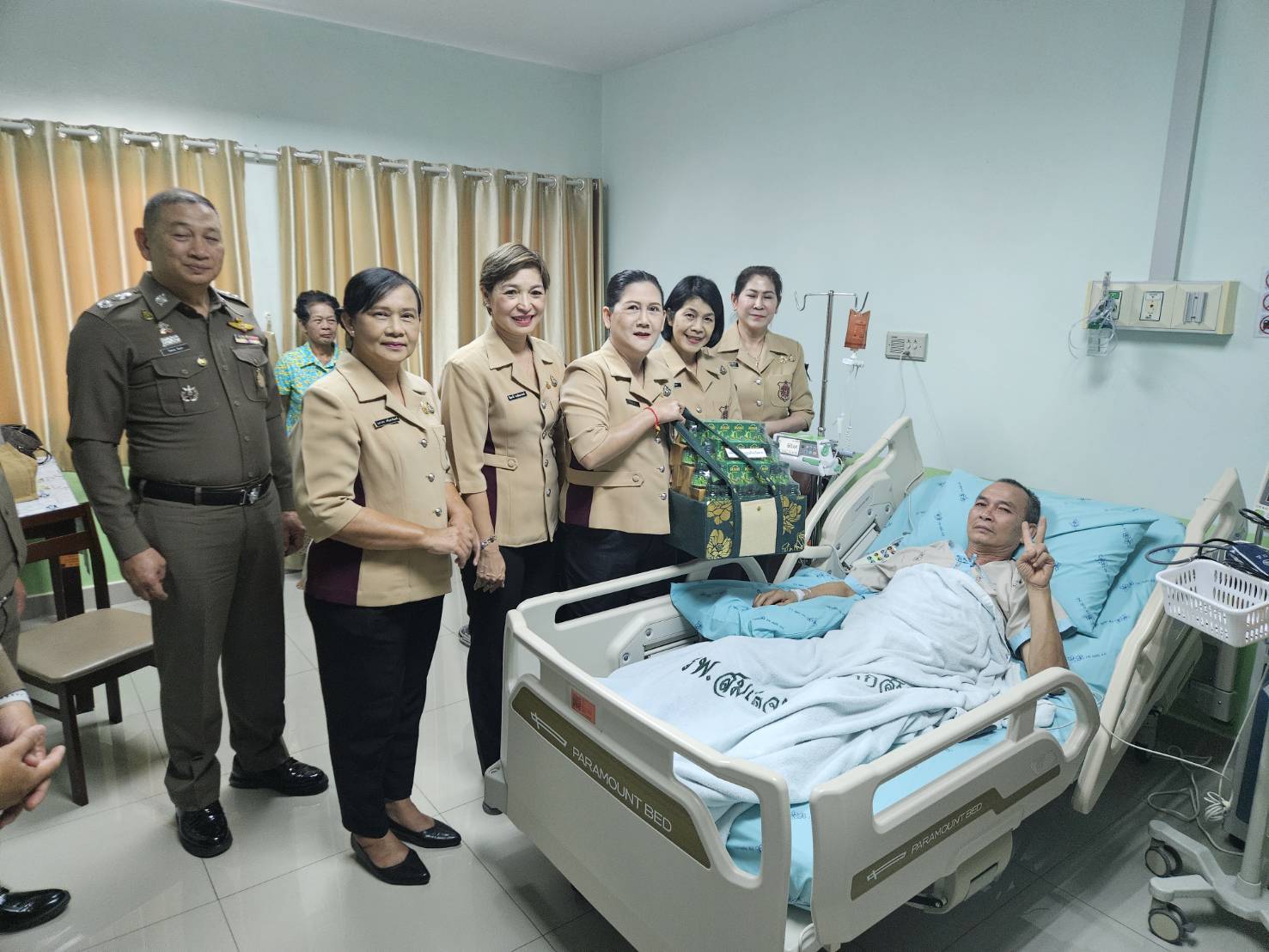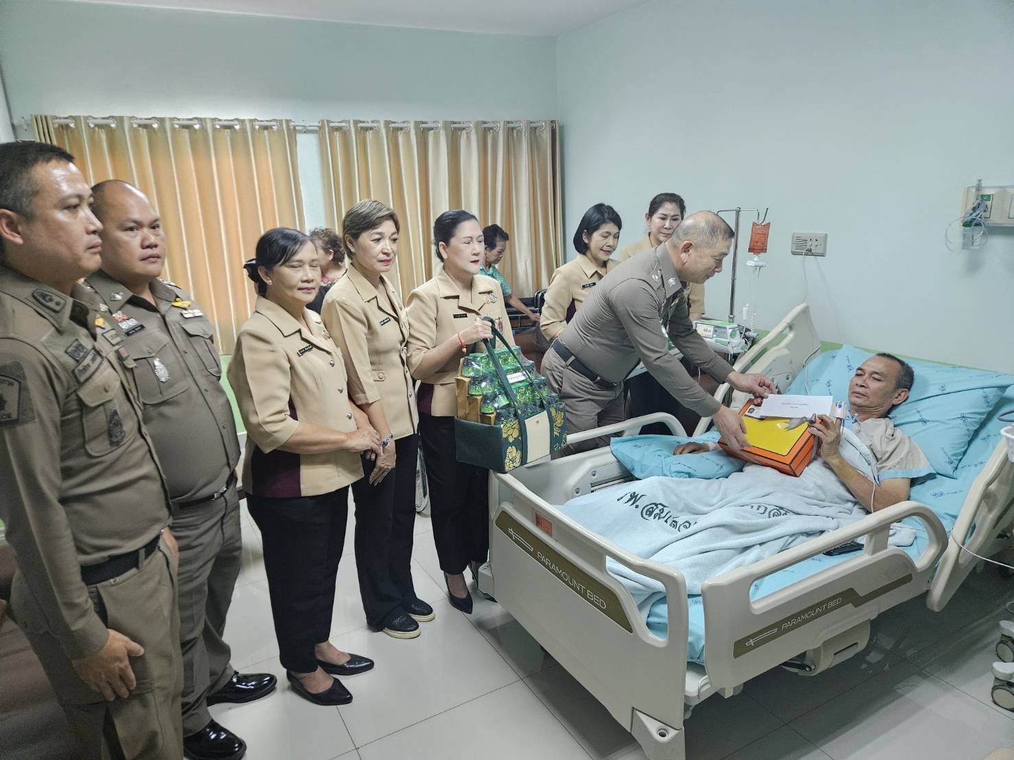 และคณะแม่บ้านตำรวจภูธรจังหวัดตาก ได้เดินทางมาเยี่ยมบำรุงขวัญ ร.ต.อ.พิสัณห์ ประภารัตน์ รอง สว.(สอบสวน) สภ.วังเจ้า ซึ่งอยู่ระหว่างพักรักษาตัวจากอาการโรคหลอดเลือดในสมอง ณ โรงพยาบาลสมเด็จพระเจ้าตากสินมหาราช อ.เมืองตาก จว.ตาก ตามโครงการ “ครอบครัวตำรวจเราไม่ทิ้งกัน” พร้อมได้มอบเงินช่วยเหลือ เพื่อเป็นขวัญและกำลังใจเพื่อแสดงถึงความห่วงใย ความเอื้ออาทร และการดูแลซึ่งกันและกันในครอบครัวตำรวจ