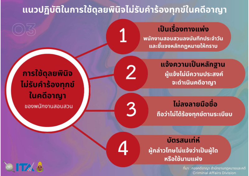 แนวปฏิบัติในการใช้ดุลยพินิจไม่รับคาร้องทุกข์ในคดีอาญา